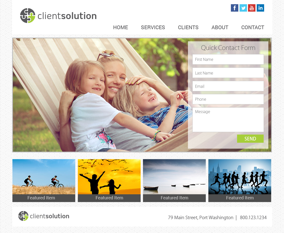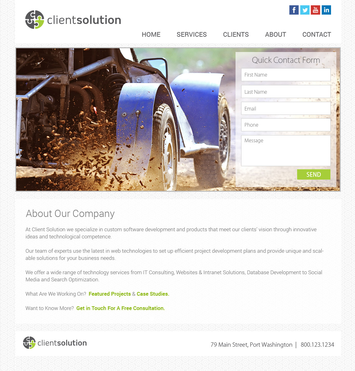 Client Solution offers our customers a cost effective solution for affordable and custom websites. We now offer several modern designs that you can start with. These designs can be implemented quickly and have options for future customization. With ten years of experience building websites we have found that most clients want to get up and running quickly with a professional website and then they often choose to customize their sites over time. Our platform not only gives you a professional website but our administration dashboard allows you to easily change your navigation, add drop downs/new pages and easily edit page content without any programming knowledge. The best part is our customer support. We are available to walk you through changes and we are also available if you need a consultant to help you with special requests or custom graphics, images or customizations.